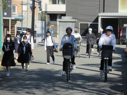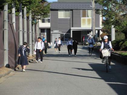 10月18日(水) 登校風景 公開日 2023/10/18 更新日 2023/10/18 そ の 他 連日の晴天となりました。朝の冷え込みから昼間は夏日になっていきます。 寒暖差による体調不良の生徒も増えてきているので、しっかりと寒さ対策もしましょう。