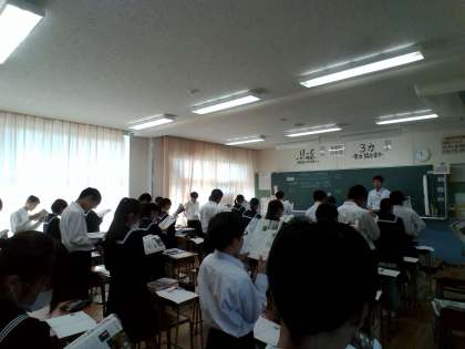 10月26日(金)4限 上:2−1 社会 中:2−2 国語 下:2−3 家庭科