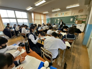 11月7日(火)1学年進路学習 公開日 2023/11/08 更新日 2023/11/08 1学年 11月7日(火)5限 本日、1学年では第1回進路学習を行いました。最初に学年集会を行い、今後の進路について学習をし、その後、各学級で自分に向いている職業について調べるアンケートを行いました。結果を見て、新しい発見があった生徒もいました。