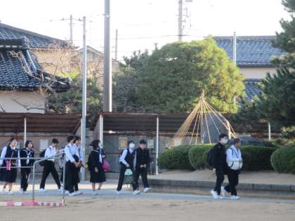 11月9日(木) 登校風景 公開日 2023/11/10 更新日 2023/11/10 そ の 他 晴天の朝は放射冷却のため冷え込むようになりました。 日が当たるところはまだ汗ばむような暑さもあります。 インフルエンザ等も流行期に入っています。手洗いうがいをしっかり行いましょう。