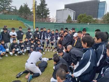高校の先生方を講師に迎え、守備や走塁、ピッチング等の指導を受けました。
