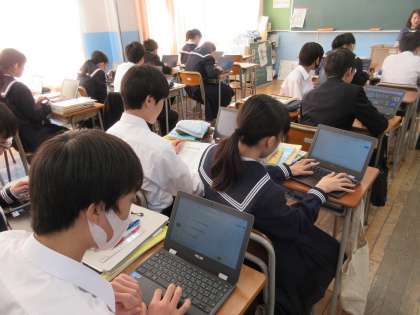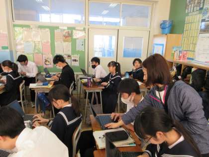 クロームブックを使って、英語のクイズ作りに取り組みました。