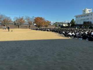 本日は、午後から避難訓練を実施しました。今回は、自分の教室だけではなく、各授業で使用する体育館や理科室等、実際の授業の場所から避難をするという形で行いました。地震が発生し、その後火災が発生するという想定での実施でしたが、生徒たちは放送をしっかり聞き、真剣な表情で避難をしていました。