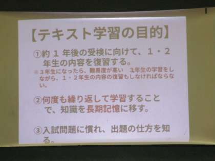 2学期末評価が終わり、2学年では本日から高校受験に向けたテキスト学習が始まります。各クラスでは、テキスト学習の進め方や重要性について担任が説明していました。これから毎日家庭での学習に取り組みましょう。