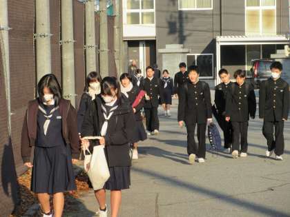 11月27日(月) 登校風景 公開日 2023/11/27 更新日 2023/11/27 そ の 他 11月も最終週を迎えました。 師走もすぐにやってきます。今年のやり残しがないように気持ちを引き締めていきたいものです。