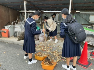 全校で90名以上の生徒が参加し、一生懸命清掃してくれて、ゴミ袋もすぐに落ち葉でいっぱいになりました。
