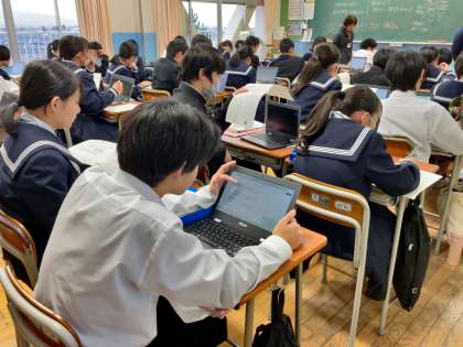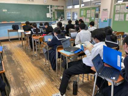 本日の総合的な学習の時間では、自分の興味のある仕事について調べました。この後、調べた職業をスライドにまとめ、学級で発表をします。
