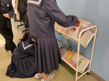 職業一覧表を見ながら、初めて知る職業を調べる生徒もいれば、廊下にある職業の本を興味深そうに眺めている生徒もいました。今後の発表が楽しみです。