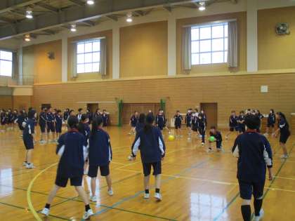 堀プロジェクトにてミッションを無事達成した2学年は、6限に学年レクリエーションに行いました。学年生徒会が中心となって企画・運営してくれました。競技はドッジボールとなり、男子、女子ともに白熱した戦いが繰り広げられていました。