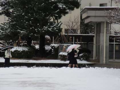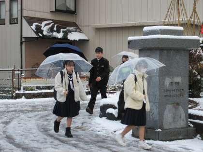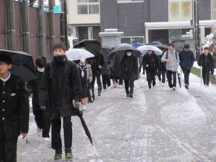今冬の初積雪となりました。生徒もみんな徒歩での登校です。