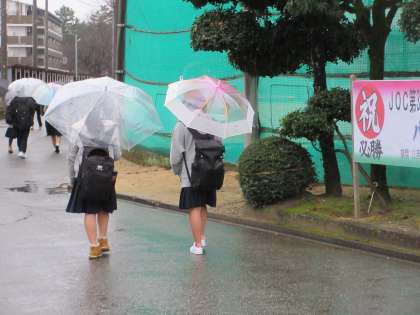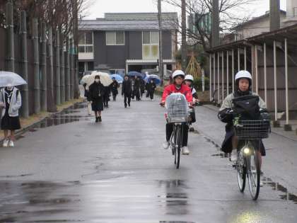 12月20日(水) 登校風景 公開日 2023/12/20 更新日 2023/12/20 そ の 他 ずいぶん寒くなってきました。 明日からは寒波も予想されています。 登校には注意をしましょう。 水曜日は挨拶運動です。 また、正門横には冬休みに県選抜でバレーボールの全国大会へ出る生徒の横断幕も設置しました。 本日まで懇談会です。