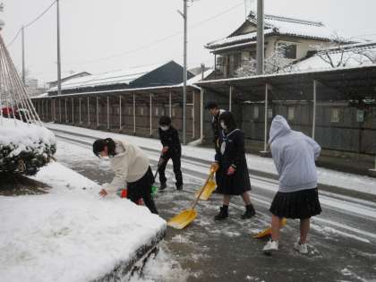 12月22日(金) 登校風景 公開日 2023/12/22 更新日 2023/12/22 そ の 他 2学期最後の登校となりました。昨日から降った雪は登校時は予想ほどは積もっておらず、比較的穏やかに登校できました。 このあとは本格的に降雪がありそうです。 除雪当番も頑張って行っていました。