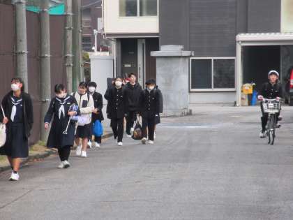 1月11日(木) 登校風景 公開日 2024/01/12 更新日 2024/01/12 そ の 他 この冬一番の冷え込みとなりました。 寒い朝は凍結していることがあります。 特に雪が残っているときは滑りやすくなるので安全に注意をしてください。
