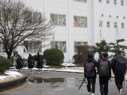 1月18日(木) 登校風景 公開日 2024/01/18 更新日 2024/01/18 そ の 他 雨で昨日までの雪もずいぶんとけてきました。 気温が下がると凍結の恐れがあるので、登下校時は細心の注意をお願いします。