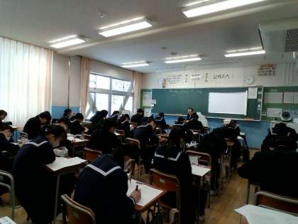 3学年の授業では、来週に迫った私立一般入試に向けて、実践的な問題に挑戦していました。問題をたくさん解き、英文に慣れましょう!