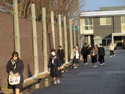 今朝は晴天になりました。雪解けが進みますが凍結することもあるので気をつけて登校してください。