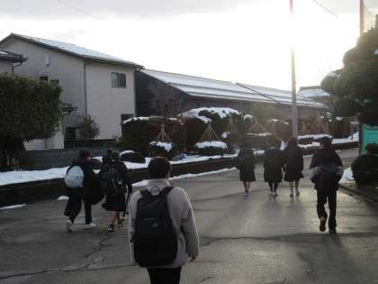 1月29日(月) 登校風景 公開日 2024/01/29 更新日 2024/01/29 そ の 他 今朝は晴天になりました。雪解けが進みますが凍結することもあるので気をつけて登校してください。 今週は1年生は「夢発見『13歳の自分探し』」、2年生は実力テスト、3年生は私立高校一般入試、金曜日には新入生の説明会が行われます。