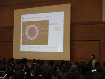 思春期の心と体や性感染症等の性のトラブルについて正しい知識を身に付け、健全な生き方ができることを目的とし、講演会が行われました。講師には富山大学附属病院産婦人科助教の米田 徳子先生をお招きし、学校の授業や家庭でなかなか聞くことができないような内容について講演していただきました。