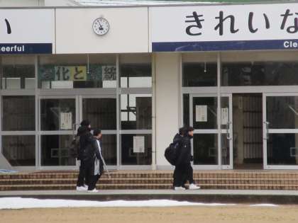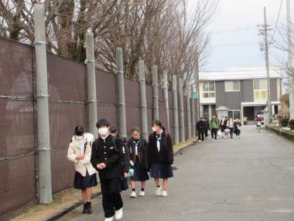 2月2日(金) 登校風景 公開日 2024/02/05 更新日 2024/02/05 そ の 他 小雪が舞い散る朝です。 暖冬傾向が続き、例年よりは暖かいとはいえ寒い朝です。 感染症が流行してきています。今一度手洗いうがい等の予防策をとるように話をしています。 本日は新入生説明会です。気をつけてお越しください。