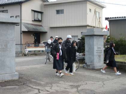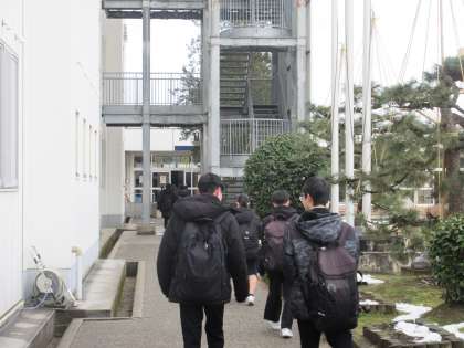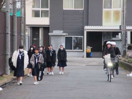2月9日(金)登校風景 公開日 2024/02/13 更新日 2024/02/13 そ の 他 晴れていますが、冷たい風が強い日になりました。 明日からは3連休。その後は学年末評価期間のため部活動も休止となります。 学習にも取り組む週末になりそうです。 本日は2年生が1年生に「社会に学ぶ『14歳の挑戦』」の体験発表をします。