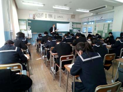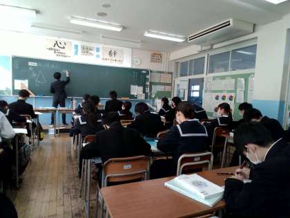 2月15日(木)2限 上:1−4 数学 中:2−3 道徳 下:3−3 英語
