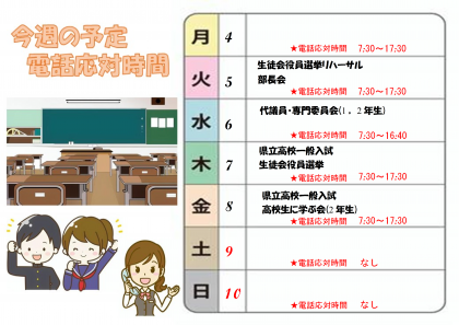 3月4日(月)〜3月10日(日)の予定です。