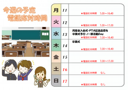 3月11日(月)〜3月17日(日)の予定です。 今週は卒業式が行われます。