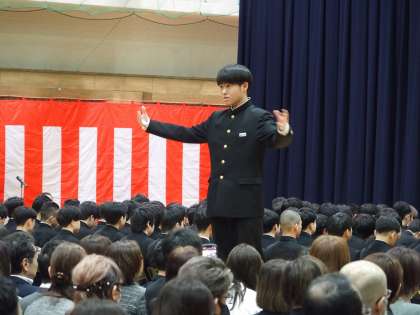 3月14日(木) 第77回卒業式 その4 公開日 2024/03/14 更新日 2024/03/14 学校行事 在校生からの送辞はお世話になった先輩方へ気持ちのこもったすてきな送辞となりました。保護者の方々からは拍手がわき起こっていました。 また、5年ぶりに在校生が会場に入り、5年分の歌声が響き渡りました。