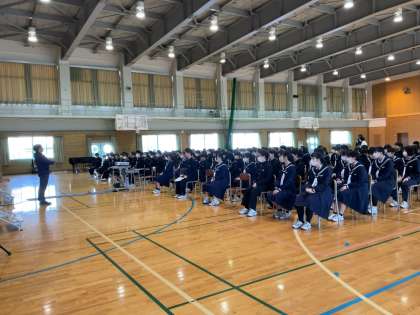 最後に、校歌を歌いました。2年生、3年生ではさらに成長した校歌になることを期待しています!