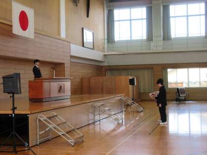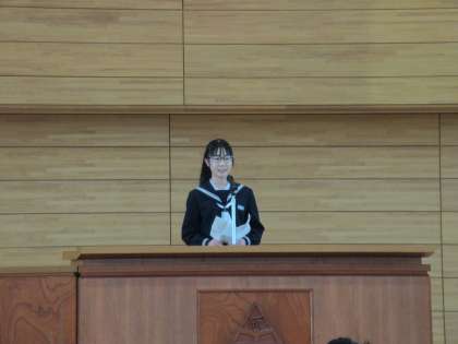 3月22日(金) 修了式・退任式 公開日 2024/03/22 更新日 2024/03/22 学校行事 3学期の修了式に先だって意見発表が行われました。 生徒代表が来年に向けての頑張りたい気持ちをしっかりと話しました。 終了式では岩田校長から「今年度一番○○だったこと」は何だろうかといろいろな問いかけがあり、今年度を振り返り来年度へつなげる話をされました。 また、今年度で退任する先生の退任式も行われました。