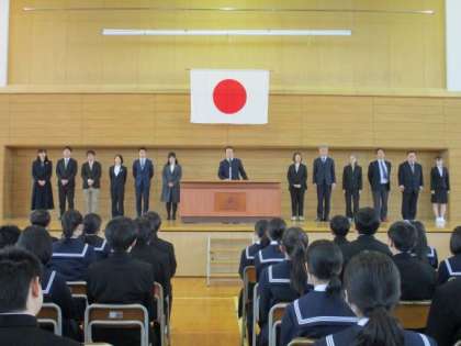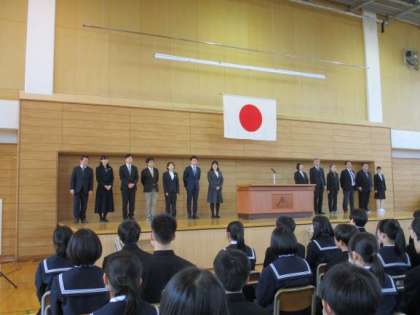 4月4日(木)着任式 公開日 2024/04/04 更新日 2024/04/04 学校行事 4月4日(木) 本日、13名の着任式がありました。 紹介後、代表生徒から歓迎の言葉がありました。 着任された先生方から、整然とした集会への賞賛がありました。