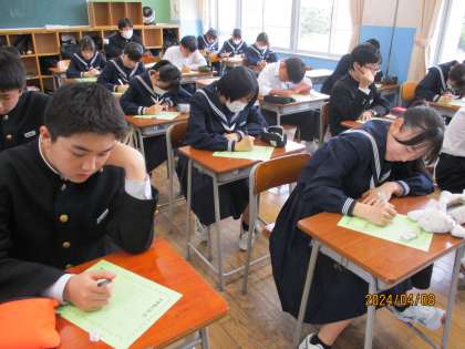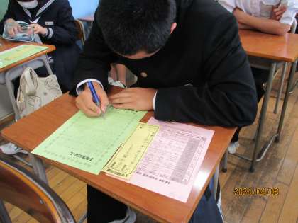 学活の時間に、3年生になった意気込みを書きました。頑張りたいことや成し遂げたいことなどがたくさんあるようです。その気持ちを忘れず、1年間頑張っていこう!