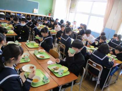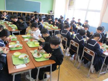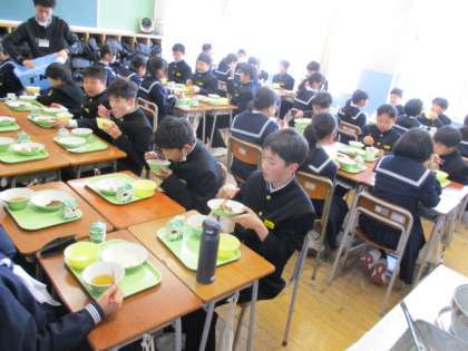 みんなで食べる給食はおいしいですね。 これからも早く準備をして楽しい給食時間にしましょう。