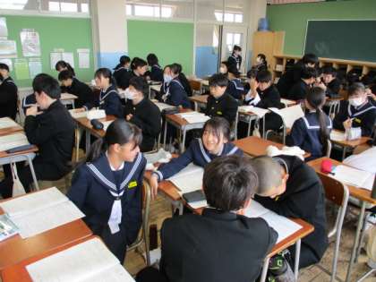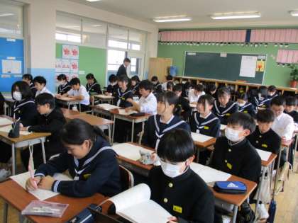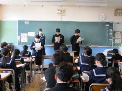 3年生が各クラスに生徒会の活動内容について説明をしにきてくれました。