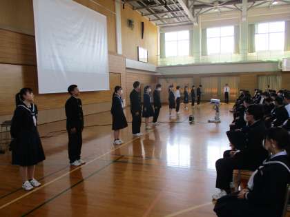 4月16日(火)学年集会 公開日 2024/04/16 更新日 2024/04/16 3学年 4月16日(火)5限 修学旅行のルールやマナーを確認する学年集会を行いました。全員でルールやマナーを守り、全員が安心して、楽しい修学旅行となるように努めます!