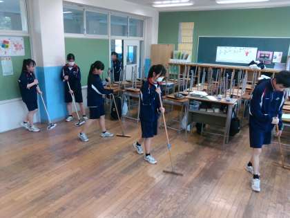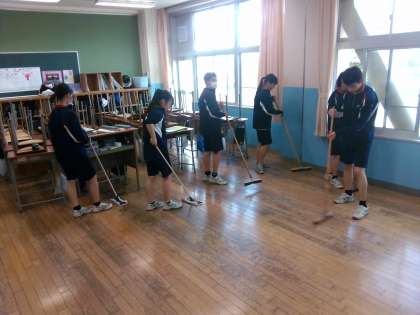 3組の清掃の様子です。素早くきれいになるよう、自分たちなりに考えた効率的な清掃方法を編み出し、実践しています。
