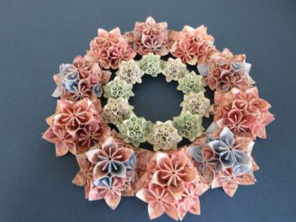 下の写真は、3年生の女子生徒が作った折り紙の作品です。どちらの作品も数百枚もの折り紙が組み合わせて作られており、間近で見るとその精巧さに驚かされます。くわえて、折り方や作り方を誰かに教えてもらったのではなく、Youtubeで調べ、試行錯誤しながら作り上げたというからさらに驚きです。
