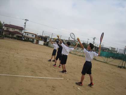 休みの日でも元気いっぱい活動しています! 大会にむけて頑張るぞ! 上 剣道部 中下 硬式テニス