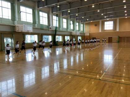 保健体育の授業でシャトルランをしました。苦手意識を持っている生徒も多い中、記録更新を目指して粘り強く取り組んでいました。