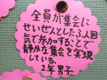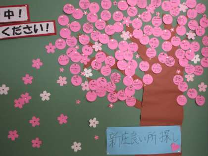 花びらをかたどったたくさんの紙一枚一枚に、それぞれが思う新庄中のよさが丁寧に書かれています。