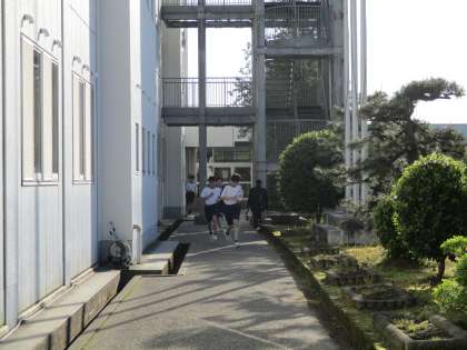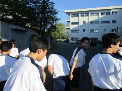 男子バドミントン部の放課後の部活動の様子です。外に出て、ランニングに励んでいます。約700メートルコースを制限時間を設けながら4周して、走り抜けました!
