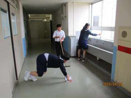 4月24日(水) 清掃の様子 公開日 2024/04/26 更新日 2024/04/26 3学年 清掃時間の3年生の様子です。一人一人が丁寧にきちんと清掃を行い、自分の役割を果たしています。 最高学年になってから、清掃のことでこちらからの指示を待つような場面がほとんどなくなりました。まじめに取り組む人が増え、3年生の成長を感じます。