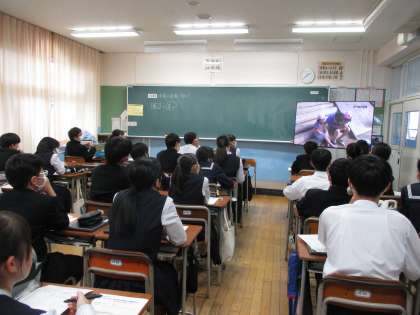 5限目の学活では、14歳の挑戦に向けて保育士の仕事についてのビデオを見ました。みんな真剣な表情で見ていました。