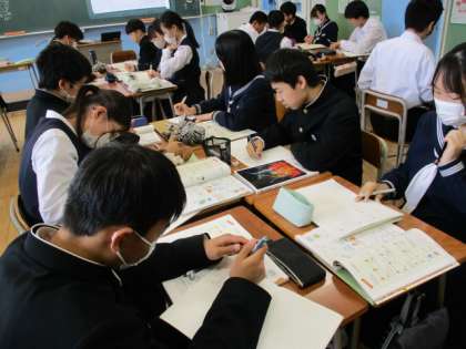 5月2日(木) 3学年授業その3 公開日 2024/05/02 更新日 2024/05/02 3学年 3−5理科 電離をイオン式で表す学習をしています。 グループで分からないところを教え合いながら学習しています。