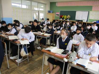 1−2英語 自分の好きなことやできることについてペアで会話しました。