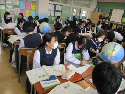 5月8日(水) 1学年授業その2 公開日 2024/05/08 更新日 2024/05/08 1学年 1−3社会 地球儀と世界地図の違いについて考えています。 1−4国語 この時間は小学校の先生が生徒の様子を見に来られました。 中学校でもがんばっていますよ!