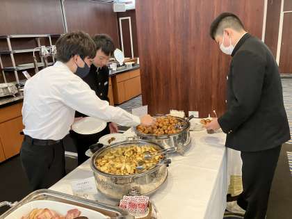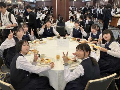 今朝、全員が自分達で起床、準備をし、時間を守って食事会場にやってきてくれました。今日もスタートから時間を守って行動ができている3年生です!朝食はバイキングで美味しそうなご馳走を元気に食べていました。