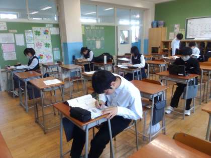 5月15日(水) 3学年 朝の教室の様子 公開日 2024/05/15 更新日 2024/05/15 3学年 3年2組の朝学活前の様子です。 自主的に勉強する姿が見られます。 自分の目標に向かって頑張っています!!