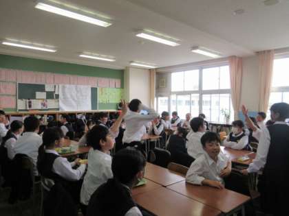 5月15日(水)給食の様子(1学年) 公開日 2024/05/15 更新日 2024/05/15 1学年 いつも残食が少ない1年生の教室は、元気なエネルギーがあふれていました。 ほとんど片付けが終わった教室では、放送で流れた曲に合わせて思わずリズムを取り出す生徒の姿にみんなが笑顔になりました。 1年生ならではの光景、ほほえましかったです。