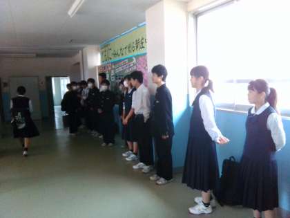 実は、昨年にも週に1度、全員で行っていた運動なのですが、今年はみんなで分担することで、毎日生徒玄関に挨拶が響き渡るよう工夫して活動を行っています。
